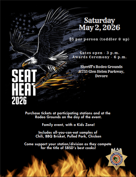 San Bernardino Sheriffs SEAT-HEAT BBQ Sheriffs Rodeo Fairground May 2, 2026 3PM-6PM