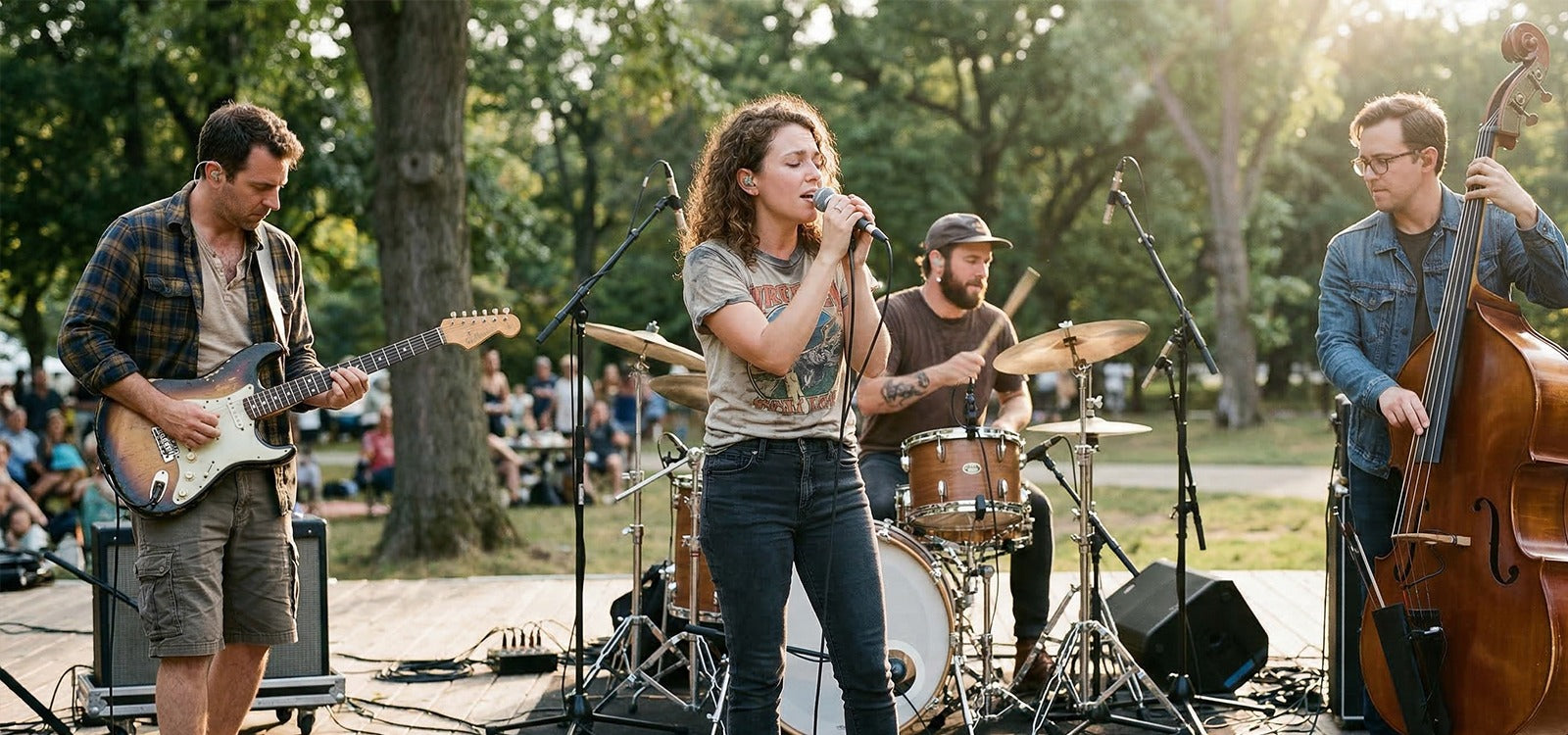 Custom digital hearing amplifiers designed for the stage, sound-enhancing in-ear plugs that fit comfortably under IEMs while protecting your hearing.